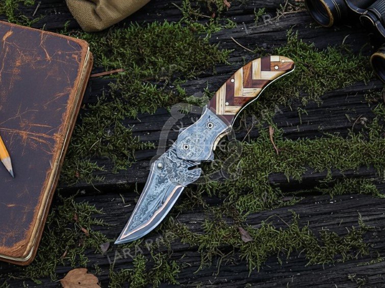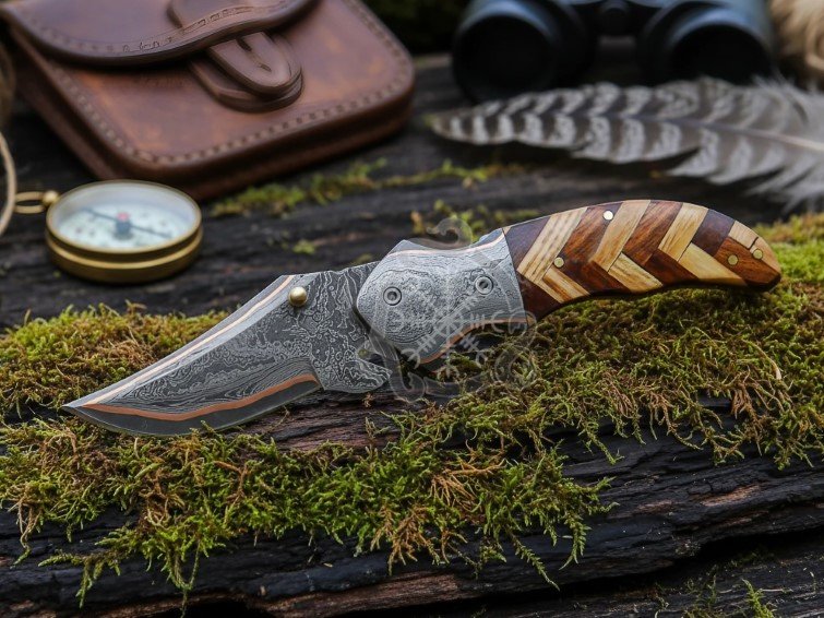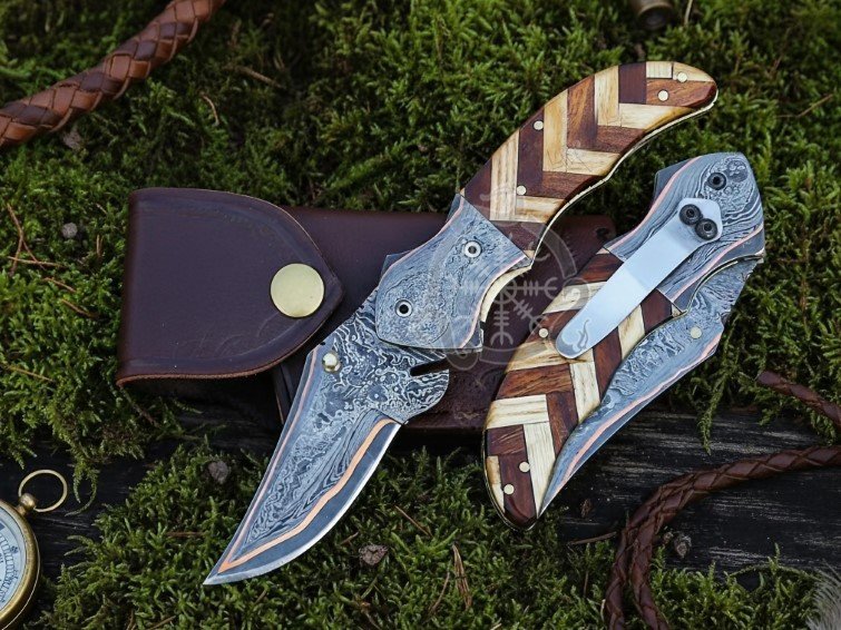 1x Copper Damascus Pocket Knife
