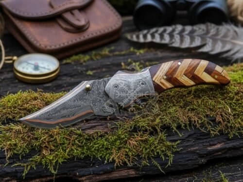 Personalized Handmade Copper Damascus Pocket Knife: Anniversary Edition Folding Knife for Camping, Hunting & Gifts