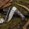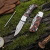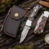 The knife features a premium Rosewood handle, giving it a classic, natural, and elegant finish. Designed for collectors and gift-givers alike, this pocket knife blends durability, beauty, and practicality into one perfect package. Custom engraving on the leather case is also available, making it a personalized keepsake for any occasion.