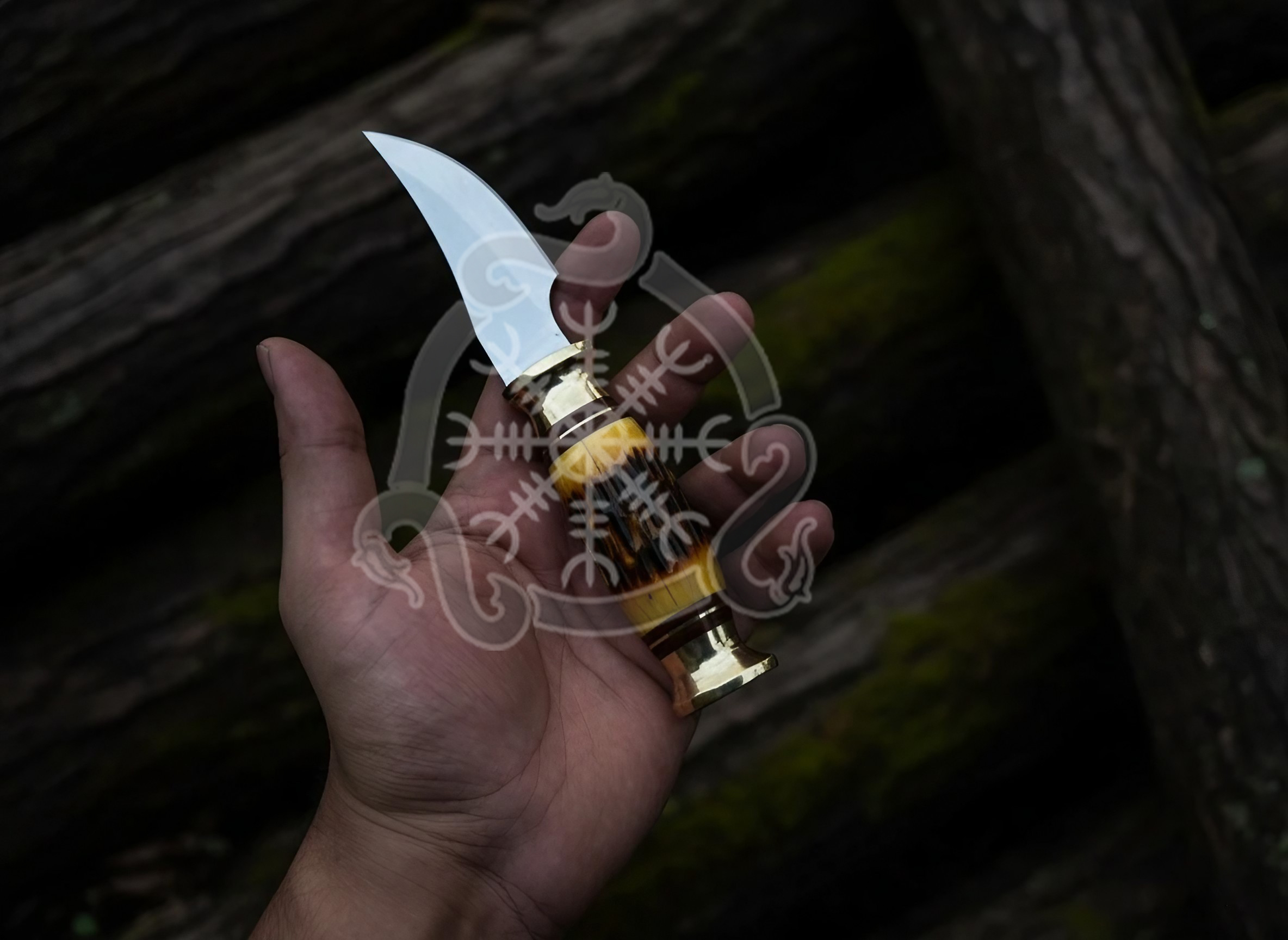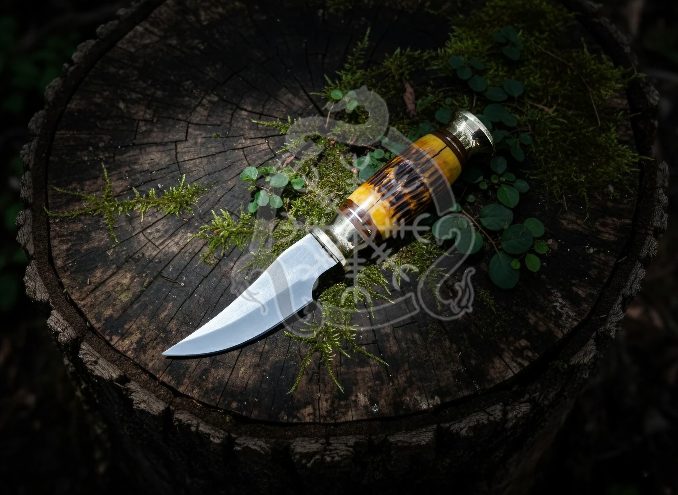 The Ember Fang Hunting Knife is a perfect blend of raw strength and timeless elegance. Hand forged from high performance D2 tool steel, this skinner delivers razor sharp precision and durability, paired with a polished bone handle that feels as good as it looks. Compact, balanced, and reliable  this knife is built for hunters and collectors alike.