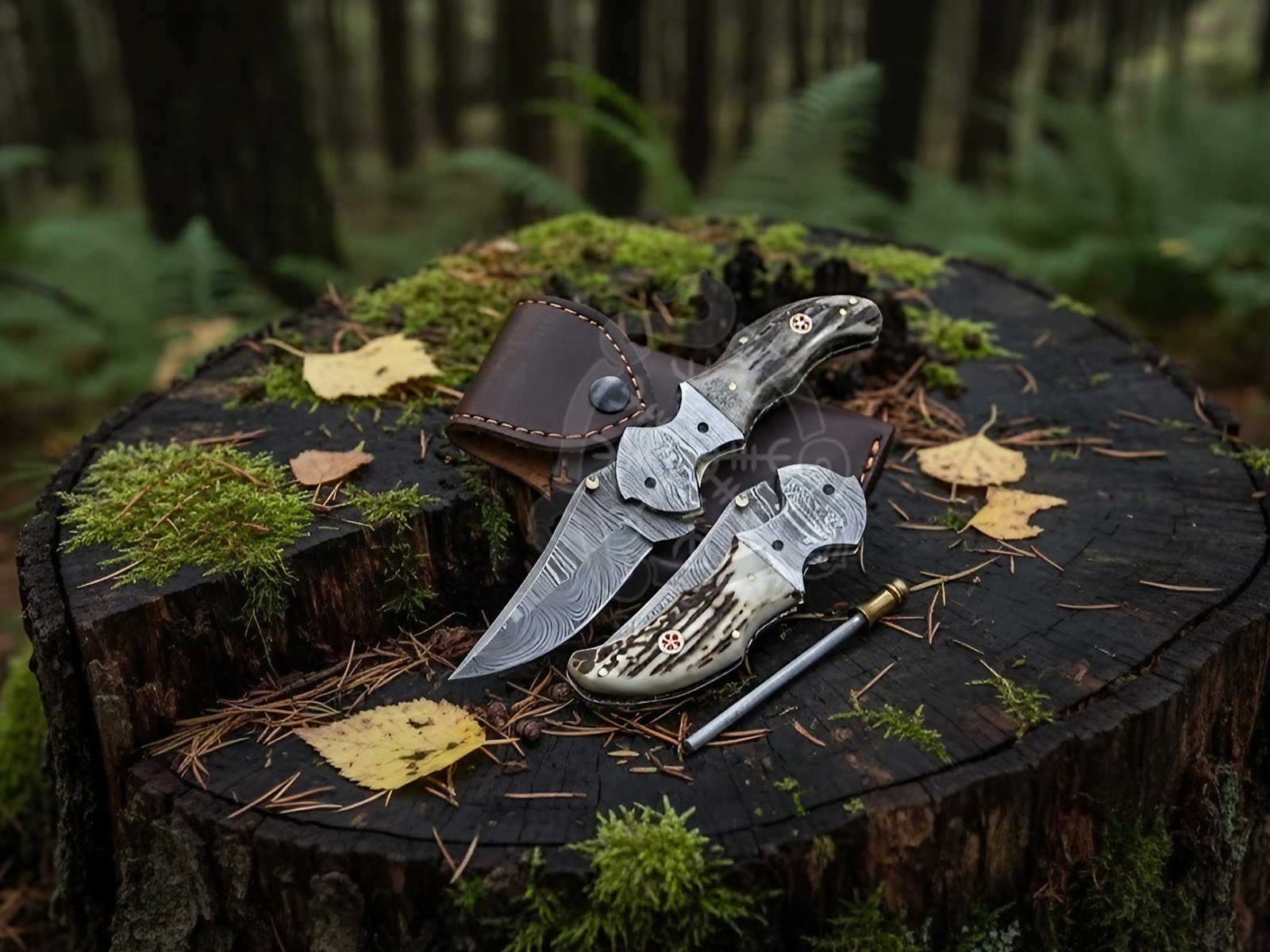 The natural Damascus pattern and stag horn handle ensure every piece is unique.