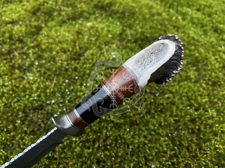 • Handle crafted from ram horn, rosewood, stag antler, and brass spacers