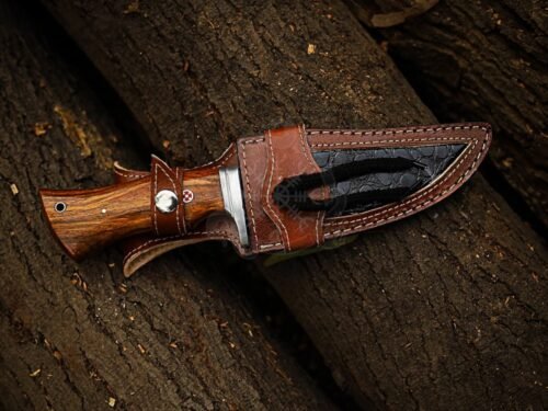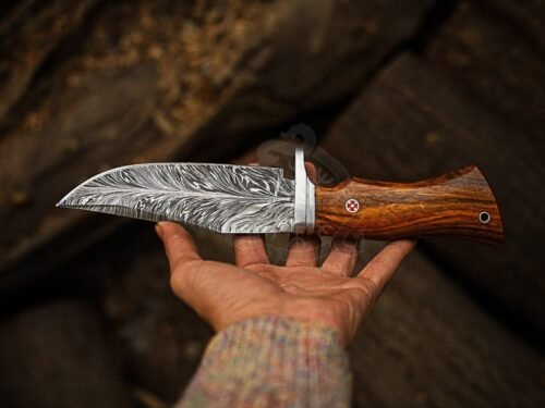 This Handmade Fixed Blade Hunting Knife is expertly crafted by skilled artisans, blending strength, style, and tradition. The razor-sharp Damascus steel blade offers excellent edge retention, while the rosewood handle provides a natural, comfortable grip for balance and control.
