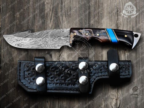 Damascus Hunting Knife, Gut Hook fishing Damascus Fixed Blade Knife, Damascus Gut Hook Knife, Damascus Ka bar Knife Hand Made Knives Gifts For Men USA