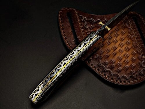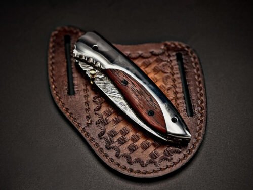 Complete with a hand-stitched genuine leather sheath, this folding pocket knife is perfect for camping, hunting, hiking, fishing, bushcraft, survival, and EDC (Everyday Carry).