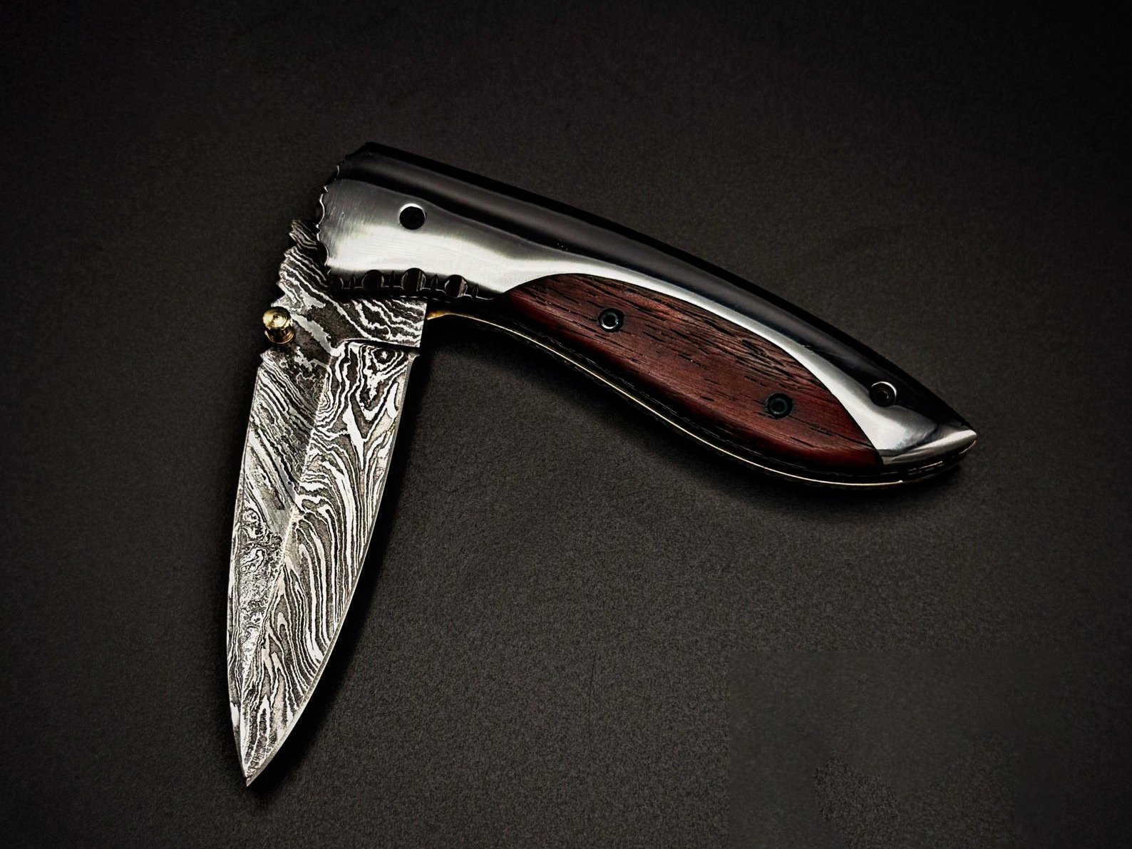 Finish: Hand Polished Damascus Pattern