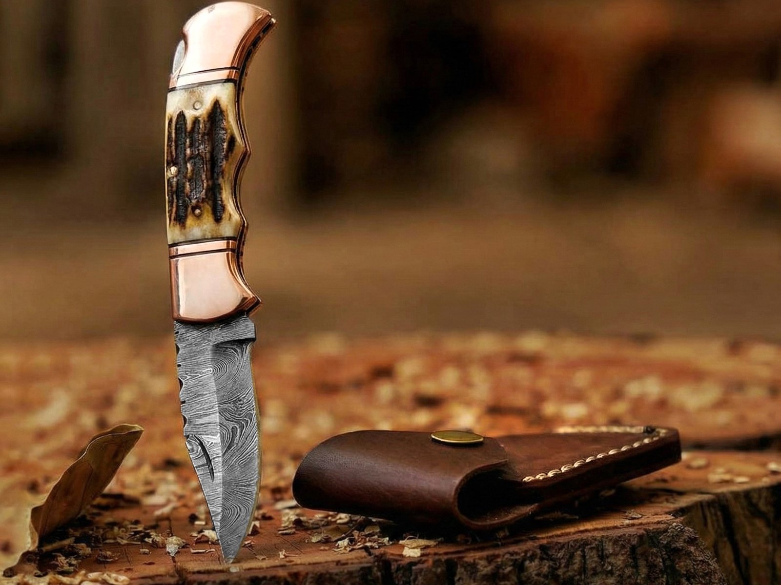 Stag Horn Handle with Copper Bolsters – Strong, stylish, and comfortable grip