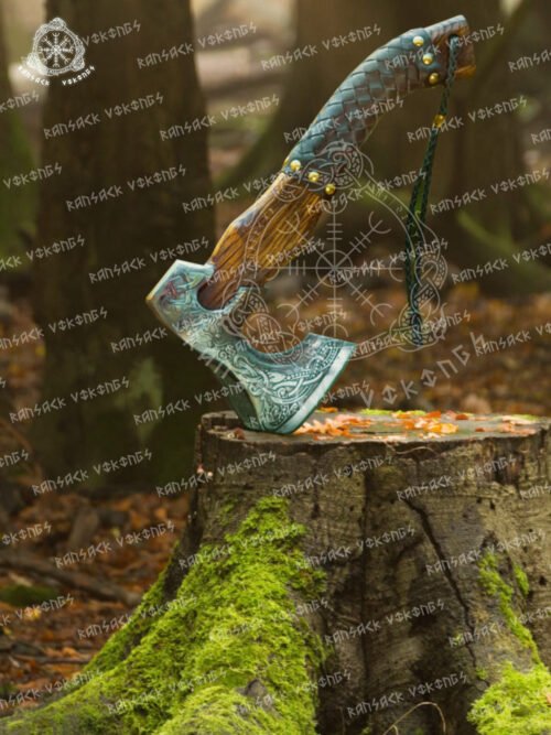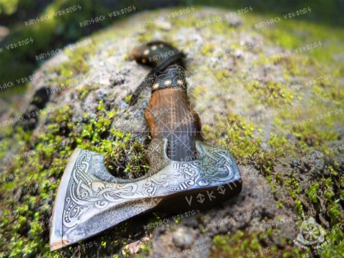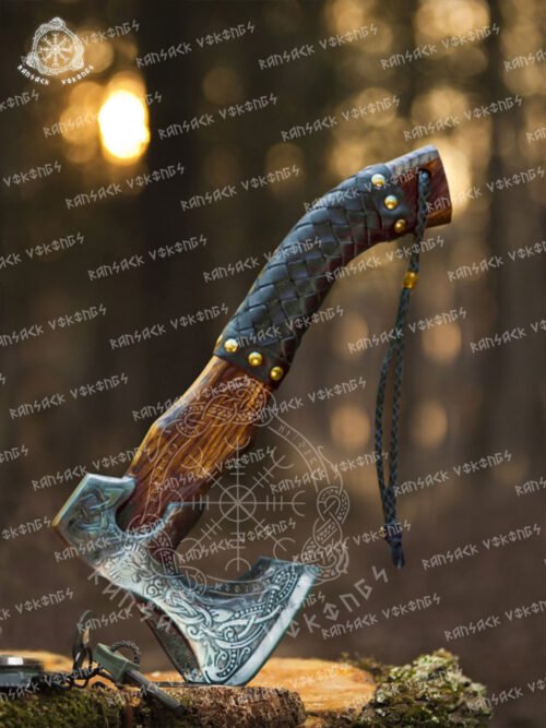 “RansackViking’s Damascus axe is more than just a tool; it’s a masterpiece. The intricate engravings add a touch of elegance to this formidable weapon.”