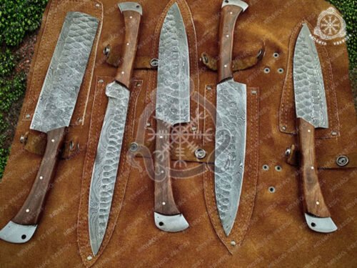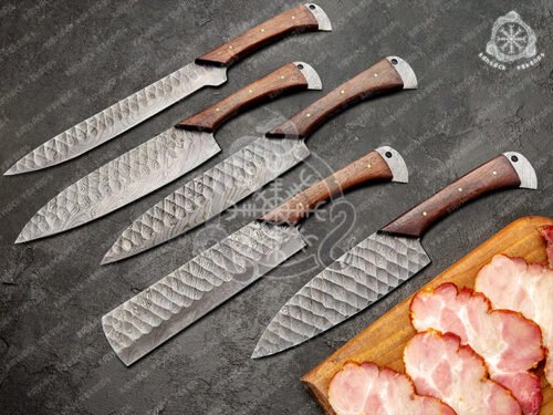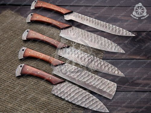 RK-377 Hand Forged Damascus CHEF’S KNIFE Set of 5 BBQ Knife Kitchen Knife Gift for Her Valentines Gift Cooking knife