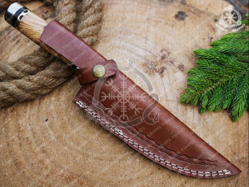 - ☆ THE 100% COW LEATHER SHEATH The pure leather sheath pocket knife: is made of 100% prime quality thick cow skin to ensure excellent manufacturing. The durable double stitching with the strong thick threads, in combination with the elegant, rust-resistant brass button make a high-standard leather knife sheath to host safely your precious KNIFE