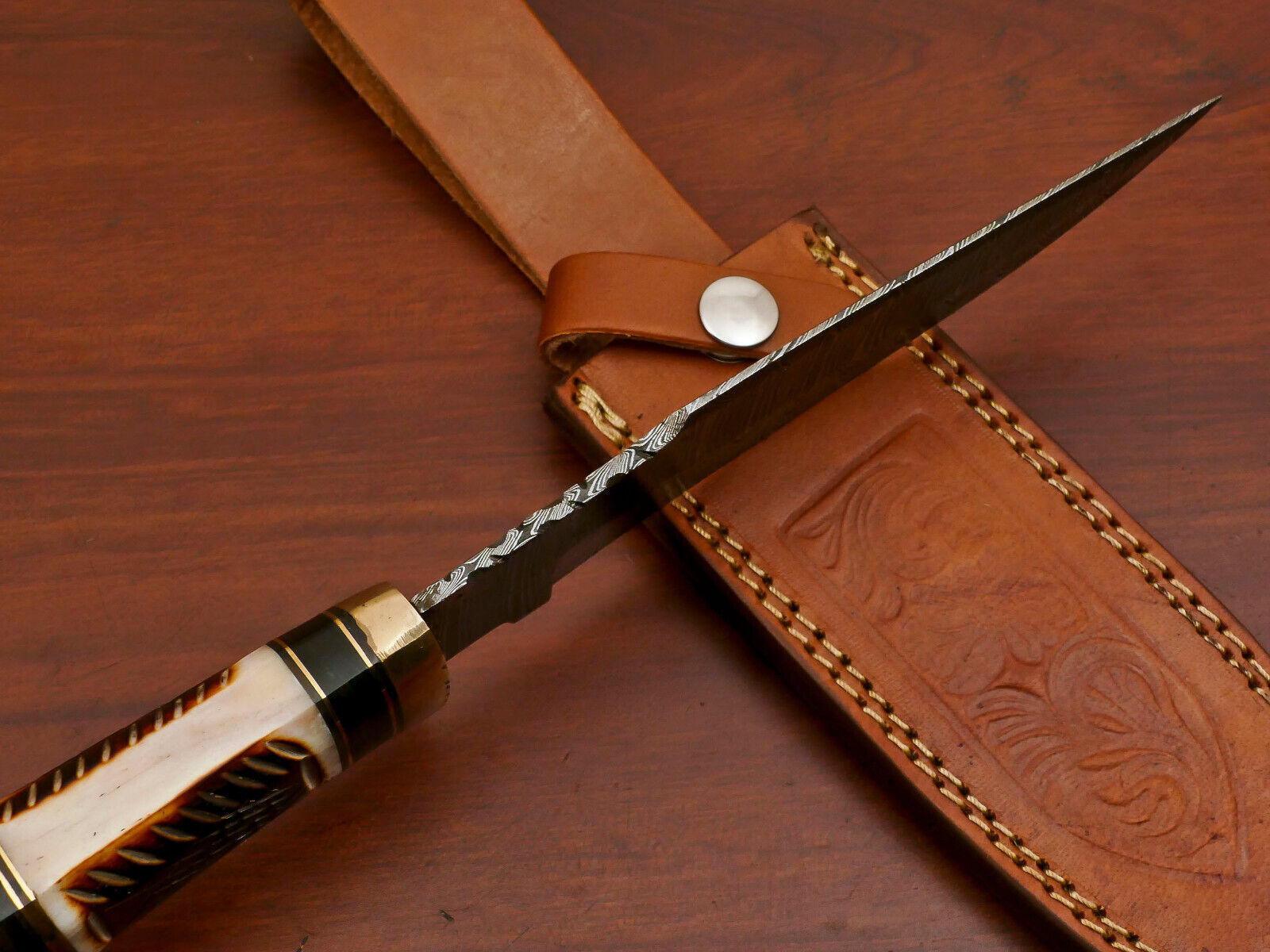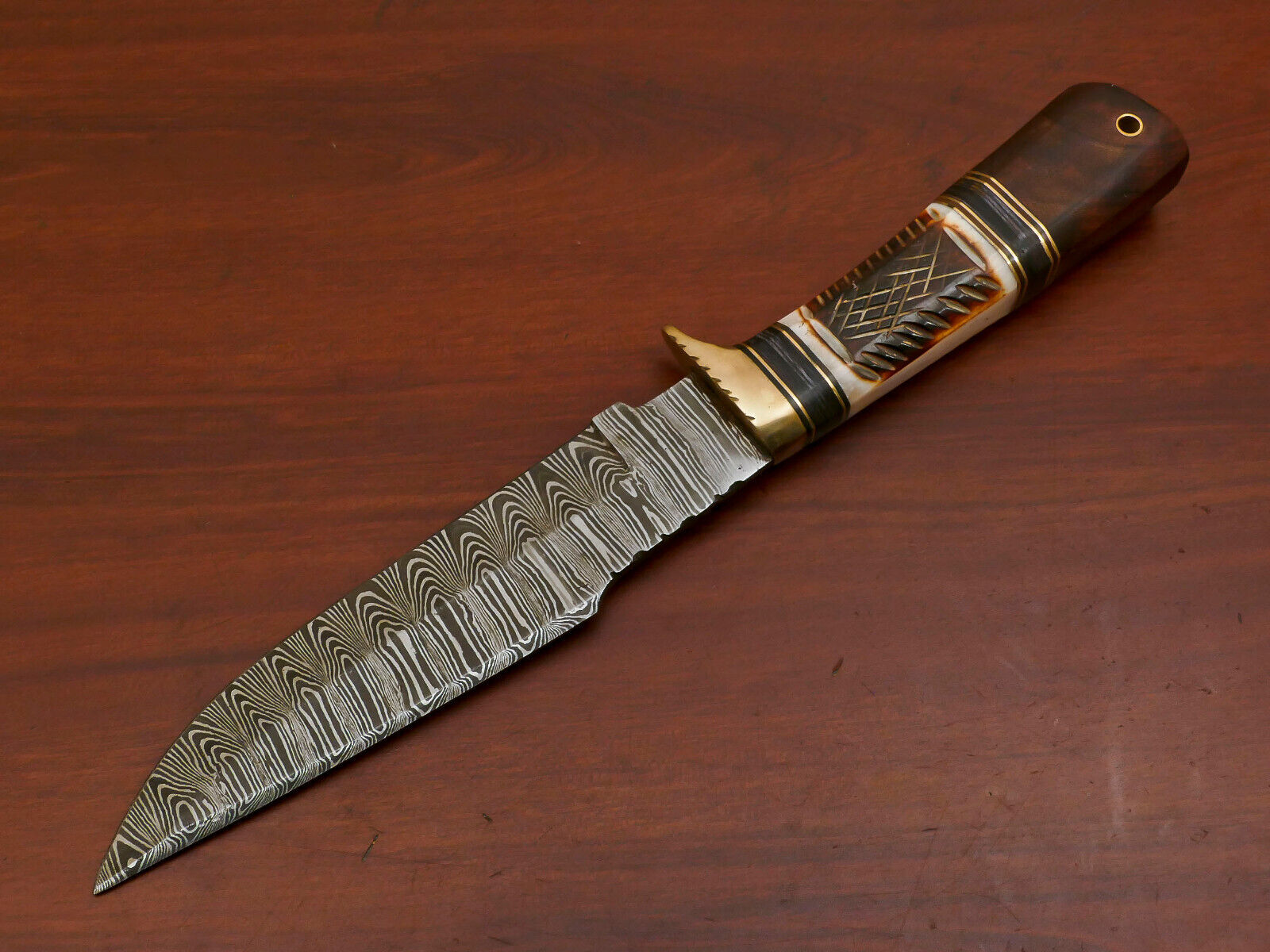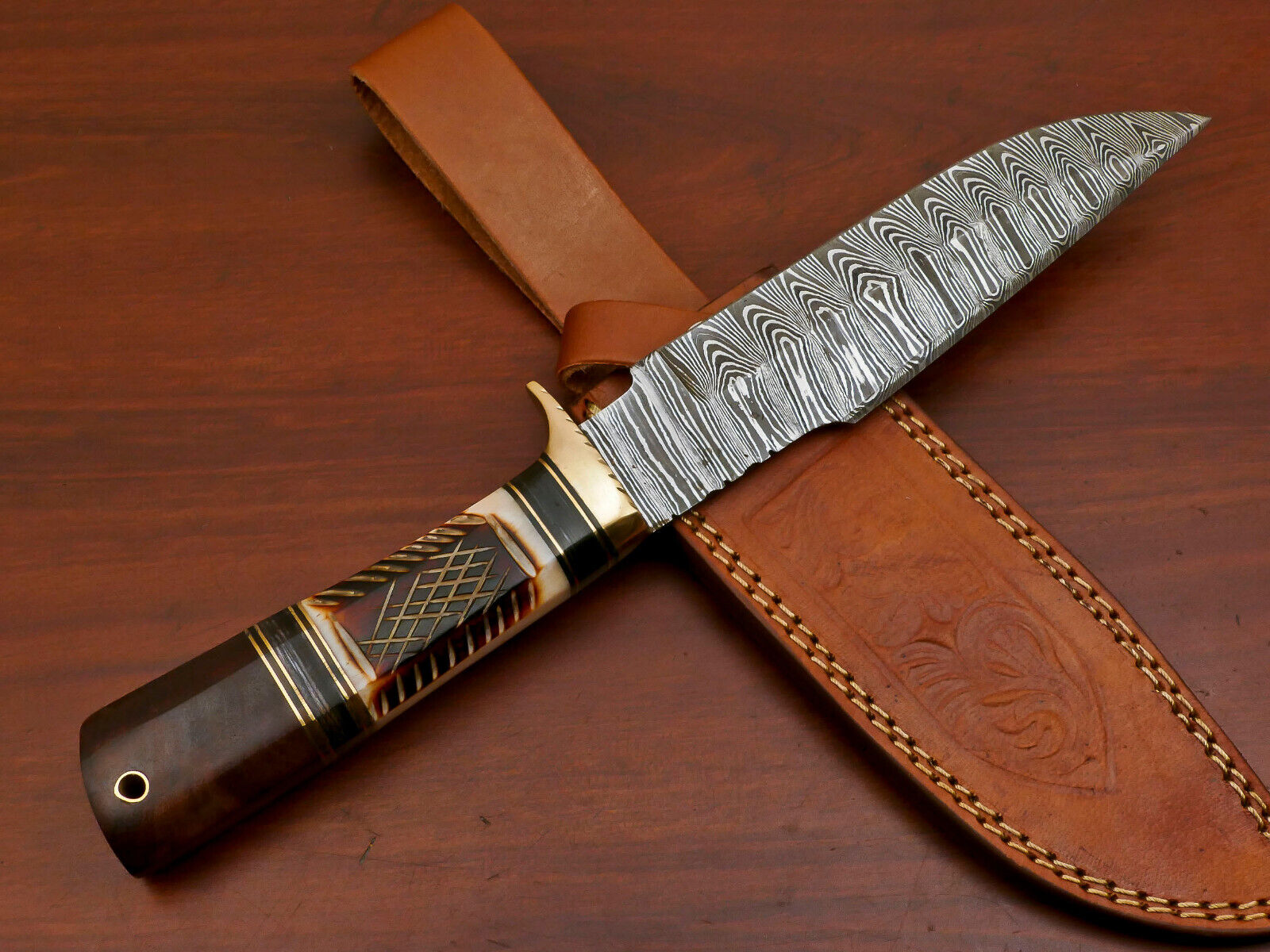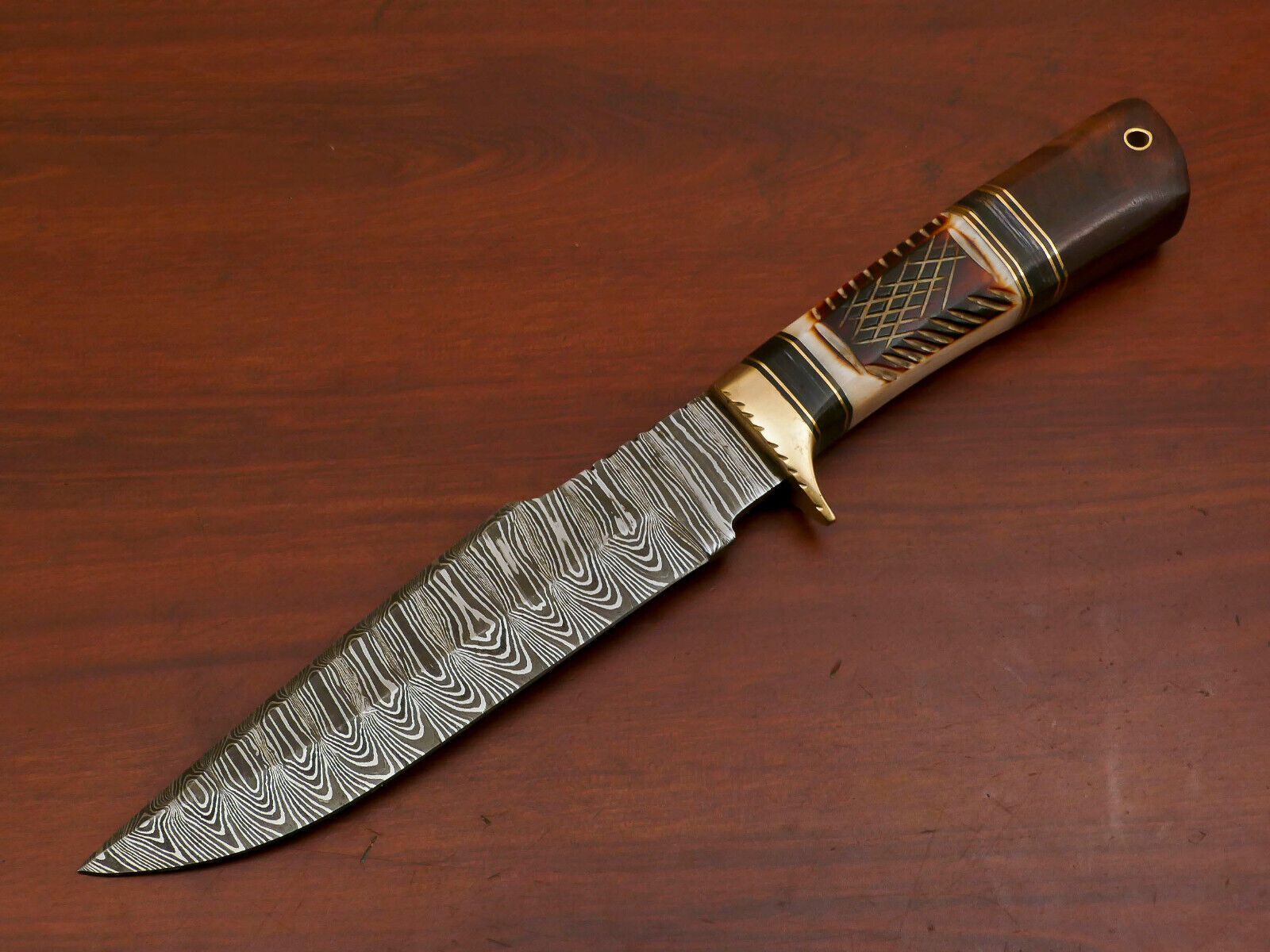 RK-398 Damascus Hunting Bowie Knife, Handmade Fixed Blade Camping Knife, Custom Made knives, Damascus Premium Knives Gifts For Men USA