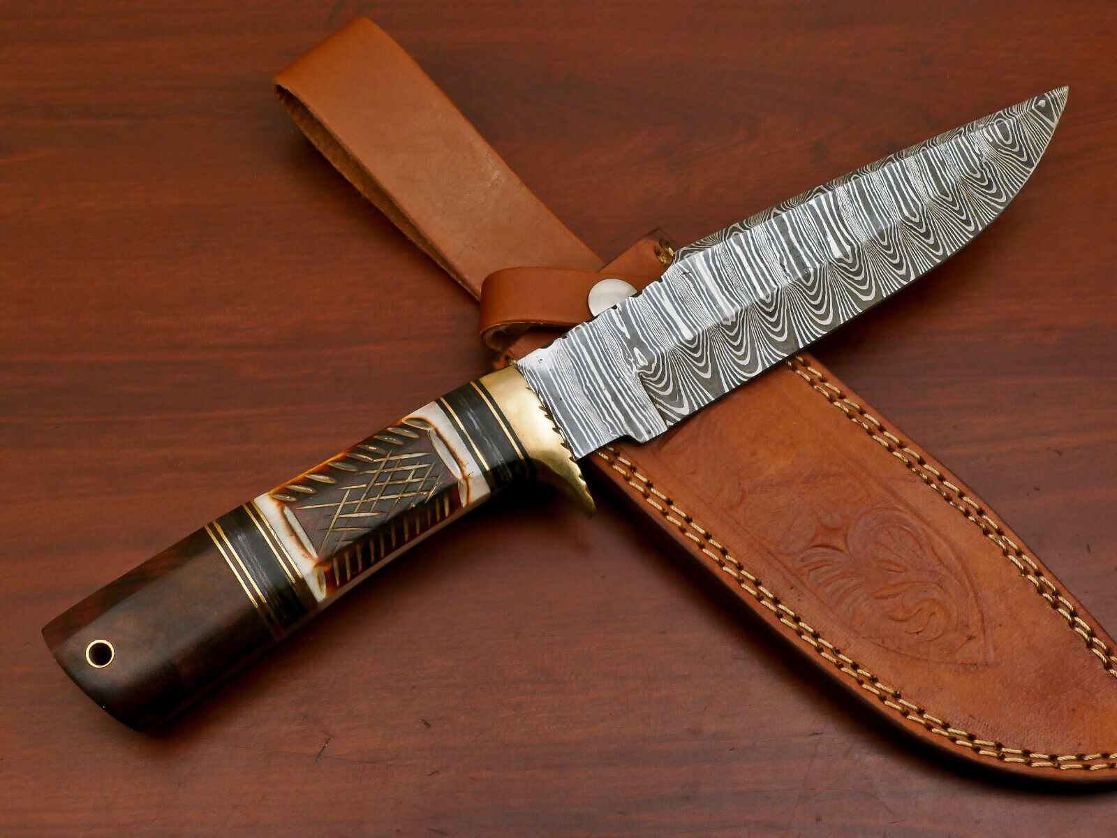 •  – 352 Layer (1095/15N20) Steel Blade Oil Tempered to 58-60 HRC Damascus steel hunting knives