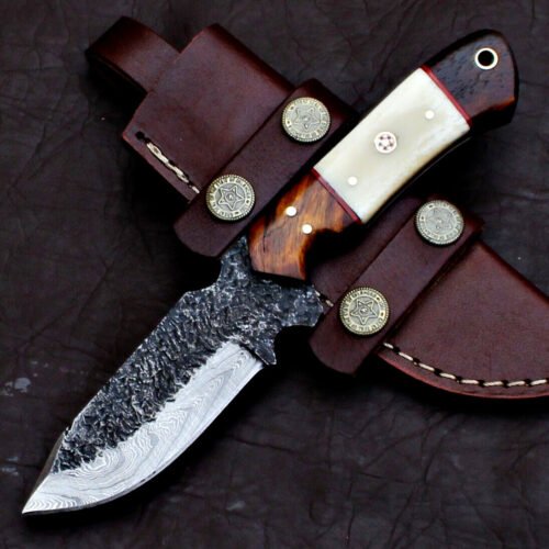RK-414 Damascus Steel Skinner Camping Knife Handmade Sharp Knife Damascus Knives Gift For Her / Him USA Made Hunting Knives