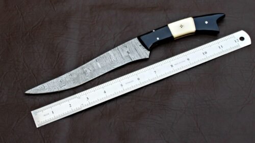 RK-421 Beautiful Damascus Fillet Knife Fishing Knives Custom Made Hunting Fish Knives Utility Knife Chef’s Best Gift For Fish Lover USA Made
