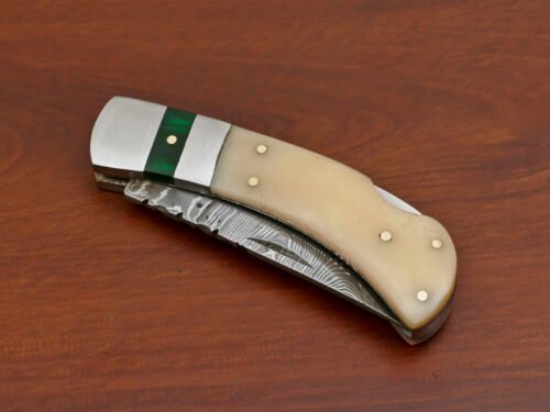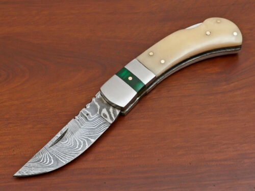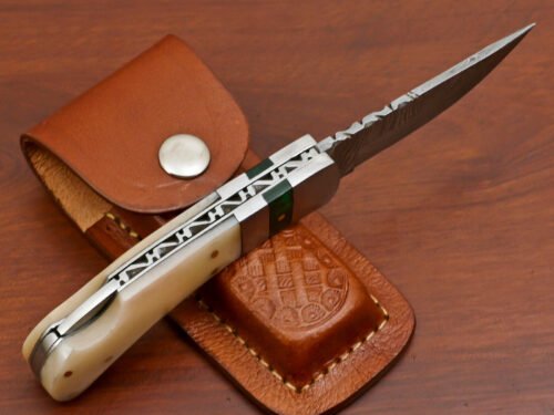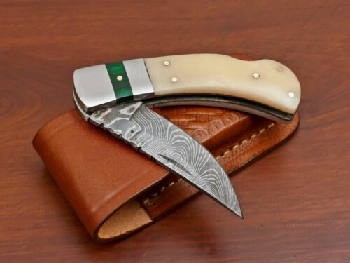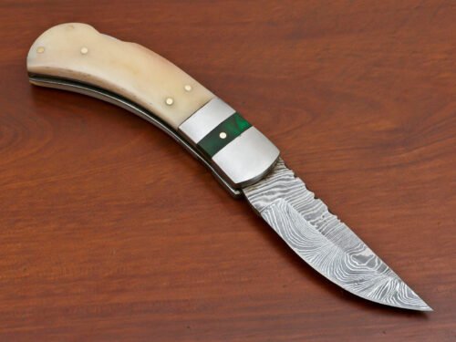 “Impressed with the Damascus folding pocket knife I recently purchased. The craftsmanship is outstanding, and the design is both functional and eye-catching. It’s not just a tool; it’s a statement piece. Perfect for those who appreciate quality blades with a unique touch.”