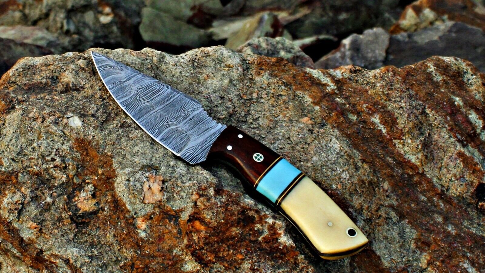 RK-429 Handmade Damascus Skinner Camping Knife Forged Damascus Knives Beautiful Handle Prime Art Best Gift For Him and Her USA made Knives