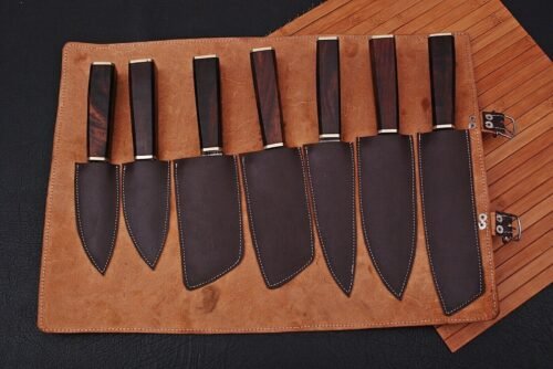 The time off has been good only because it has given more creative time. A special order from a chef in Puerto Rico . Not only the chef knives a extra for protection a Dagger. Each knife has its own leather sheath and a leather roll to hold all 5. I liked it so much made two sets. Sell or keep. Not Sure ….The whole set is $850.00 where do you purchase 5 fine Damascus knives for this price. Leather roll is worth 200.00 alone….Knives are 16 inches, 14 inches, 13 inches, 11.50 inches, Dagger 9.50 inches. Don’t take off the leather roll its $170.00 each Awesome Price for this whole set. but we are offering them on 70% off for very limited time offer..