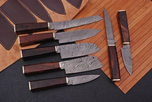 4 reviews for RK-430 Handmade Damascus Chef set Of 7pcs With Leather Damascus Knife Set,Damascus Chef Knife,Full Kitchen Knife Set,Damascus Chef Set,Newly Design