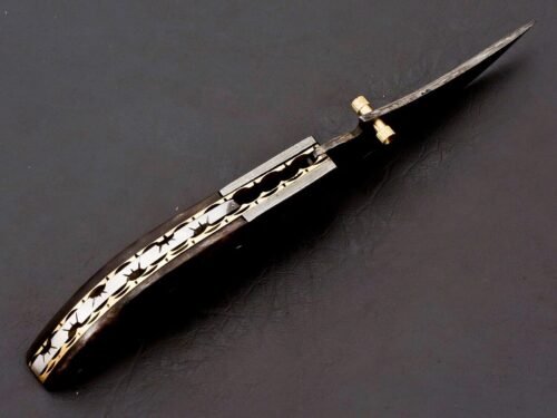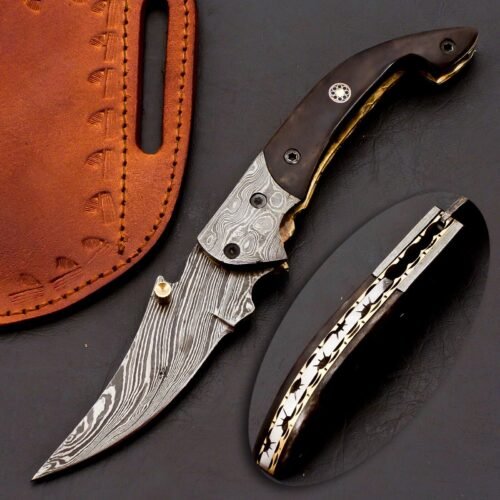 “Thrilled with my recent purchase of the Damascus folding pocket knife. The attention to detail is phenomenal, and it’s become a favorite in my collection. Sharp, reliable, and the unique design sets it apart. A must-have for knife enthusiasts!”