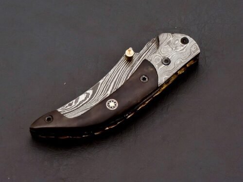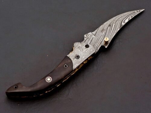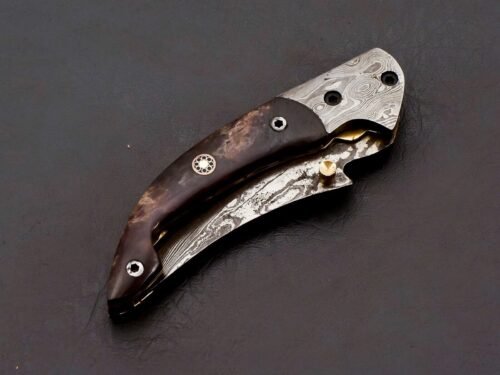 “The Damascus folding pocket knife I purchased is truly impressive. Craftsmanship is top-notch, and the blade’s patterns are captivating. It’s more than just a knife; it’s a conversation starter. Highly recommend for those who appreciate quality and a touch of elegance.”