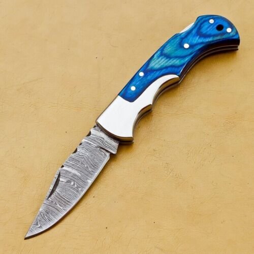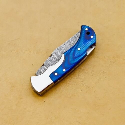 RK-447 Back Lock Damascus Pocket knife Steel Bolster Knife Hand Forged knife Every Day Carry Knife Damascus Knives USA Made Gift For Him Gift For Her