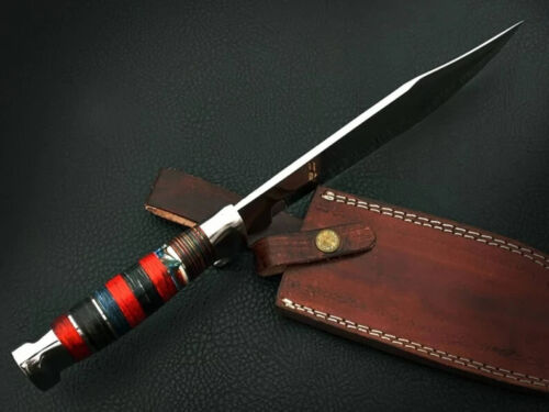 RK-448 Hand Forged Carbon Steel Hunting Bowie Knife, Fixed Blade Knife, Damascus knives, Damascus Hand Made Knives Gifts For Men USA