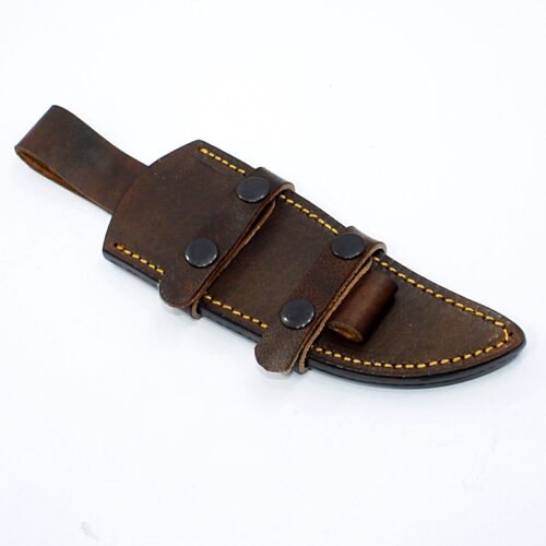 ☆ THE 100% COW LEATHER SHEATH The pure leather sheath pocket knife: is made of 100% prime quality thick cow skin to ensure excellent manufacturing. The durable double stitching with the strong thick threads, in combination with the elegant, rust-resistant brass button make a high-standard leather knife sheath to host safely your precious KNIFE