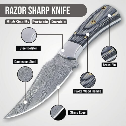 RK-459 Handmade Damascus Skinner Camping Knife Forged Damascus Knives Hard Wood Beautiful Art Best Gift For Him and Her USA made Knives