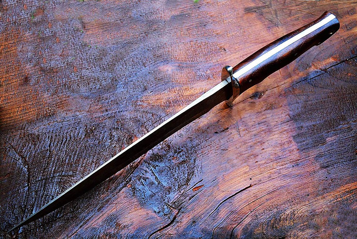 RK-473 14″ DAMASCUS Steel Knife, Hand Forged Bowie Knife, Fixed Blade knife Hunting Knife, Exotic Rose Wood Handle, Personalized gift USA Made