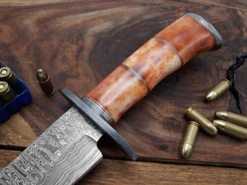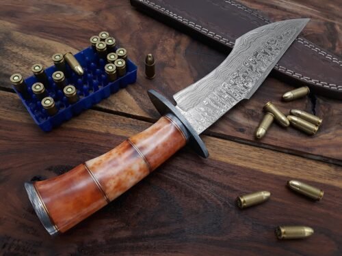 RK-488 Beautiful Damascus Hunting Camping Knife Damascus Steel Knives Camel Bone Handle Best Knife Collection Gift For Him , Her USA made