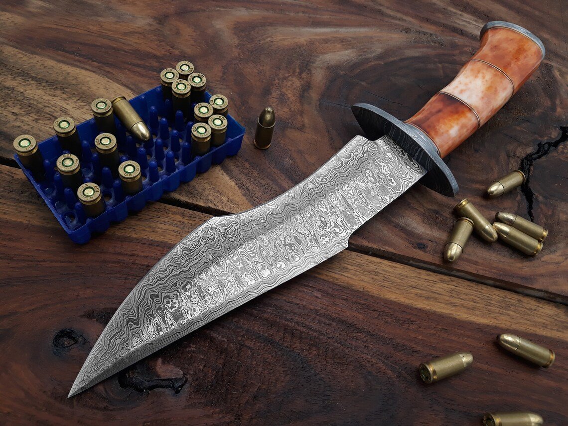 RK-488 Beautiful Damascus Hunting Camping Knife Damascus Steel Knives Camel Bone Handle Best Knife Collection Gift For Him , Her USA made