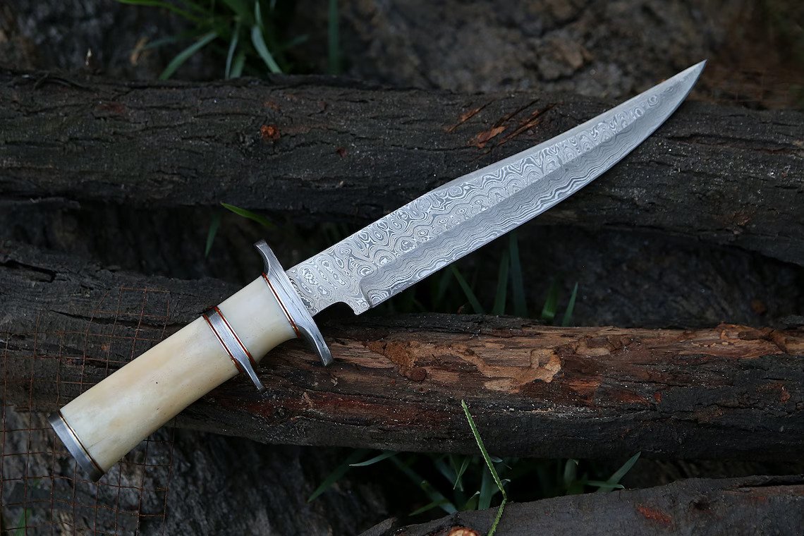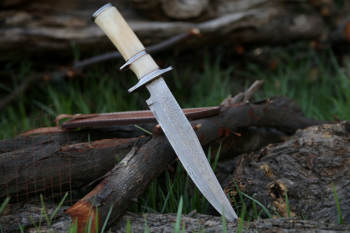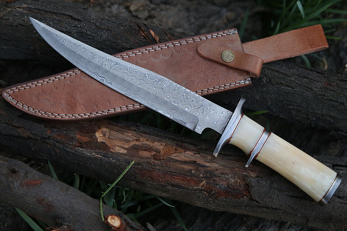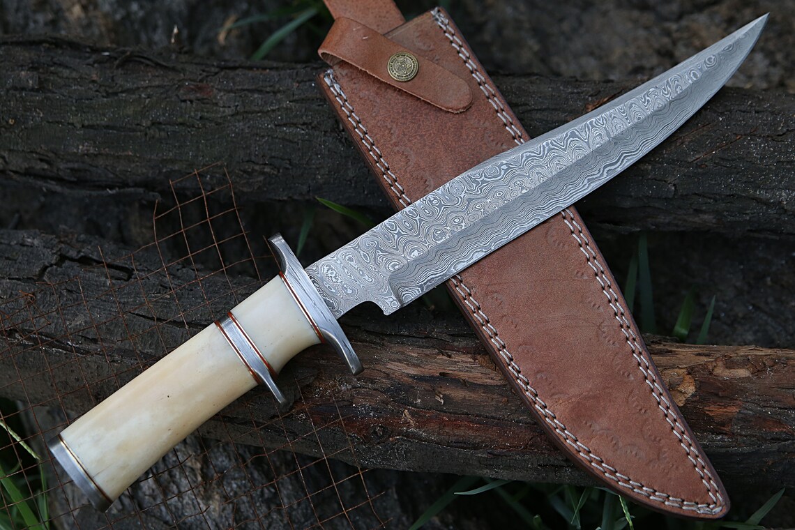 RK-489 Damascus Hunting Bowie Camping Knife Damascus Steel Knives Camel Bone Handle Best Knife Collection Gift For Him , Her USA made