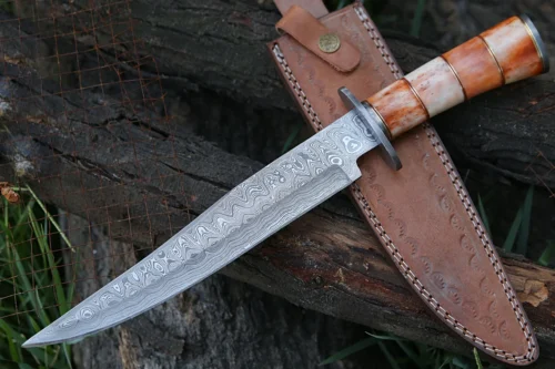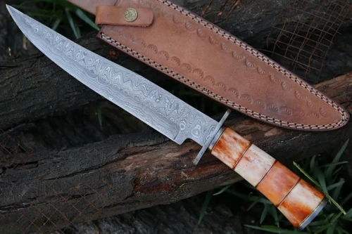 RK-491 Color Bone Damascus Hunting Bowie Camping Knife Damascus Steel Knives Beautiful Art Best Knife Collection Gift For Him , Her USA made