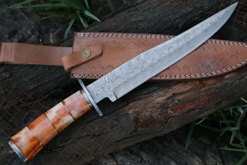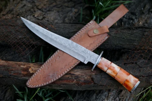 2 reviews for RK-491 Color Bone Damascus Hunting Bowie Camping Knife Damascus Steel Knives Beautiful Art Best Knife Collection Gift For Him , Her USA made