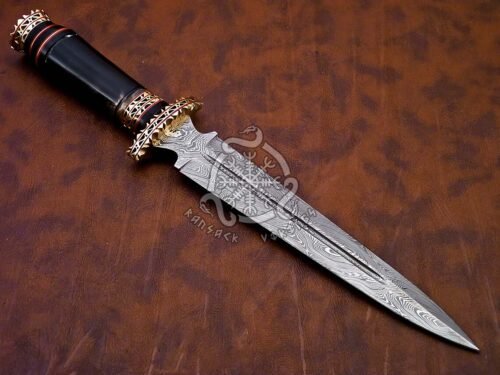 5 reviews for RK-501 Hand Made Damascus Steel Viking Dagger Knife Viking Knives Rose Bull Horn Handle Beautiful Art Best Gift For Him and Her USA made