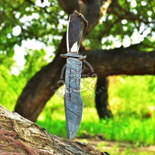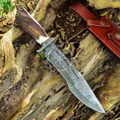 RK-514 Custom Handmade Damascus Hunting Camping Bowie Knife Best Quality Knife Gift For Him Gift For Her USA Made with Beautiful Stag Horn Handle