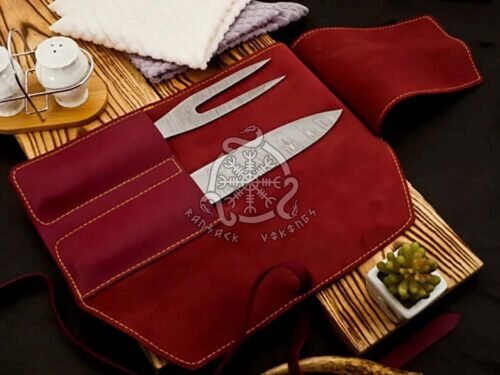 RK-516 Custom Handmade Damascus Steel BBQ Knife Set With Leather Sheath Gift For Dad Beautiful Knife Damascus Kitchen Knives Chef Knife