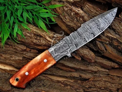 4 reviews for RK-518 Color Camel Bone Handmade Damascus Hunting Skinner Camping Knife Best Quality Knife Gift For Him Gift For Her USA Made