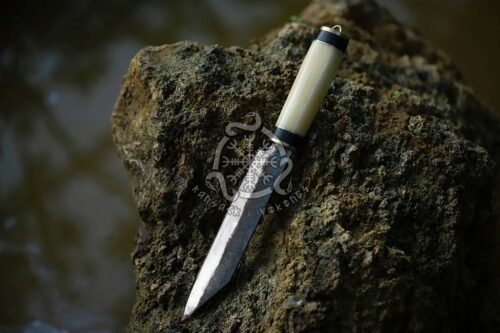 RK-527 Bone handle seax knife, hand forged viking knife, fixed blade knife, forged seax, saxon engraved knife, custom viking knife, ragnar knife