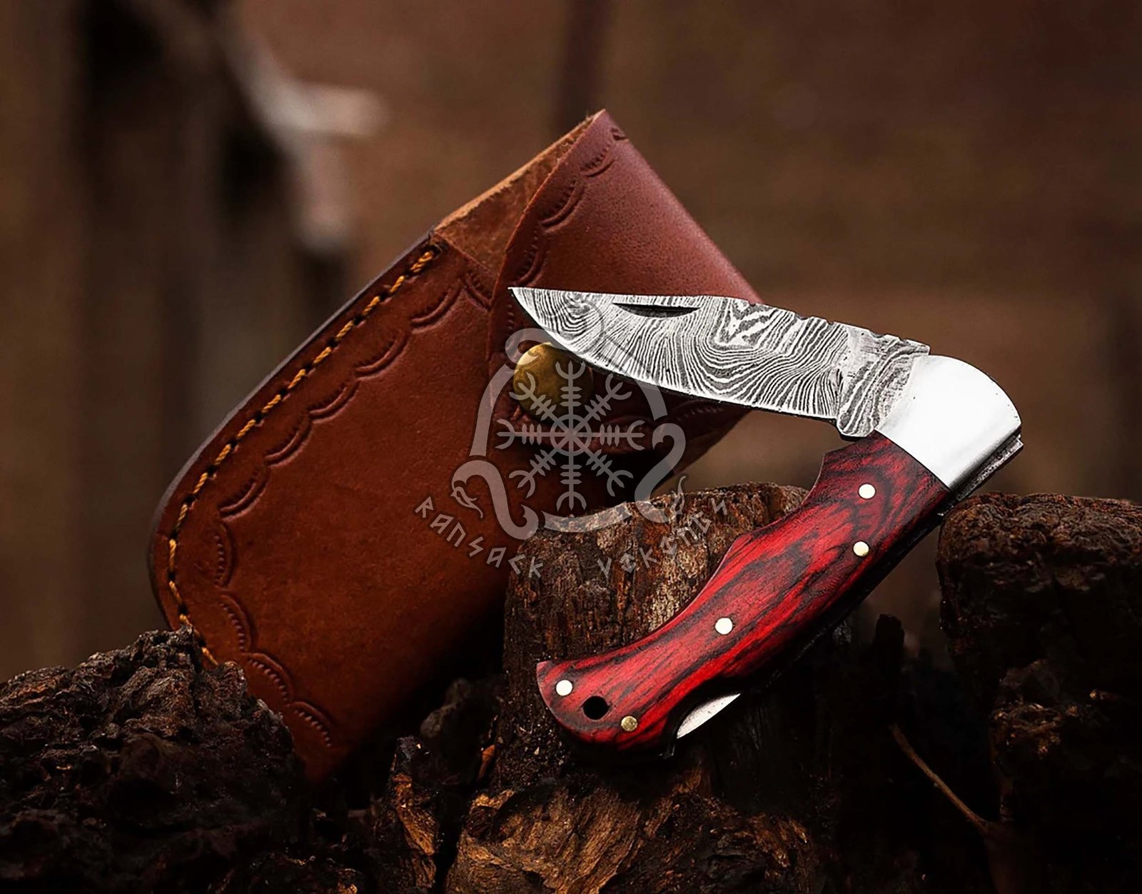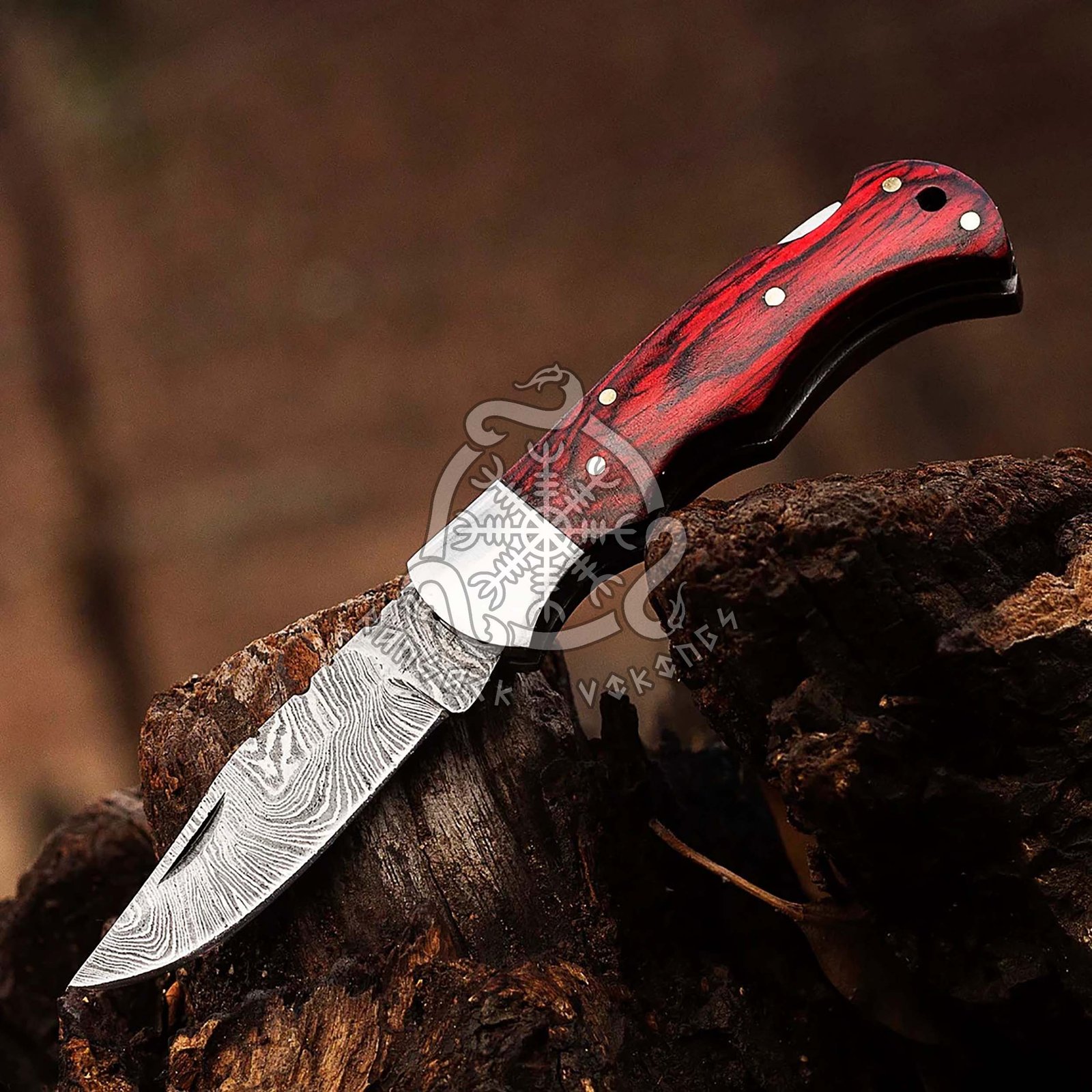 RK-559 Personalized Handmade Damascus Pocket Folding Knife 6.5″, Camping Hiking Damascus Pocket Knife, Gift for Groomsmen, Gift for Men, USA