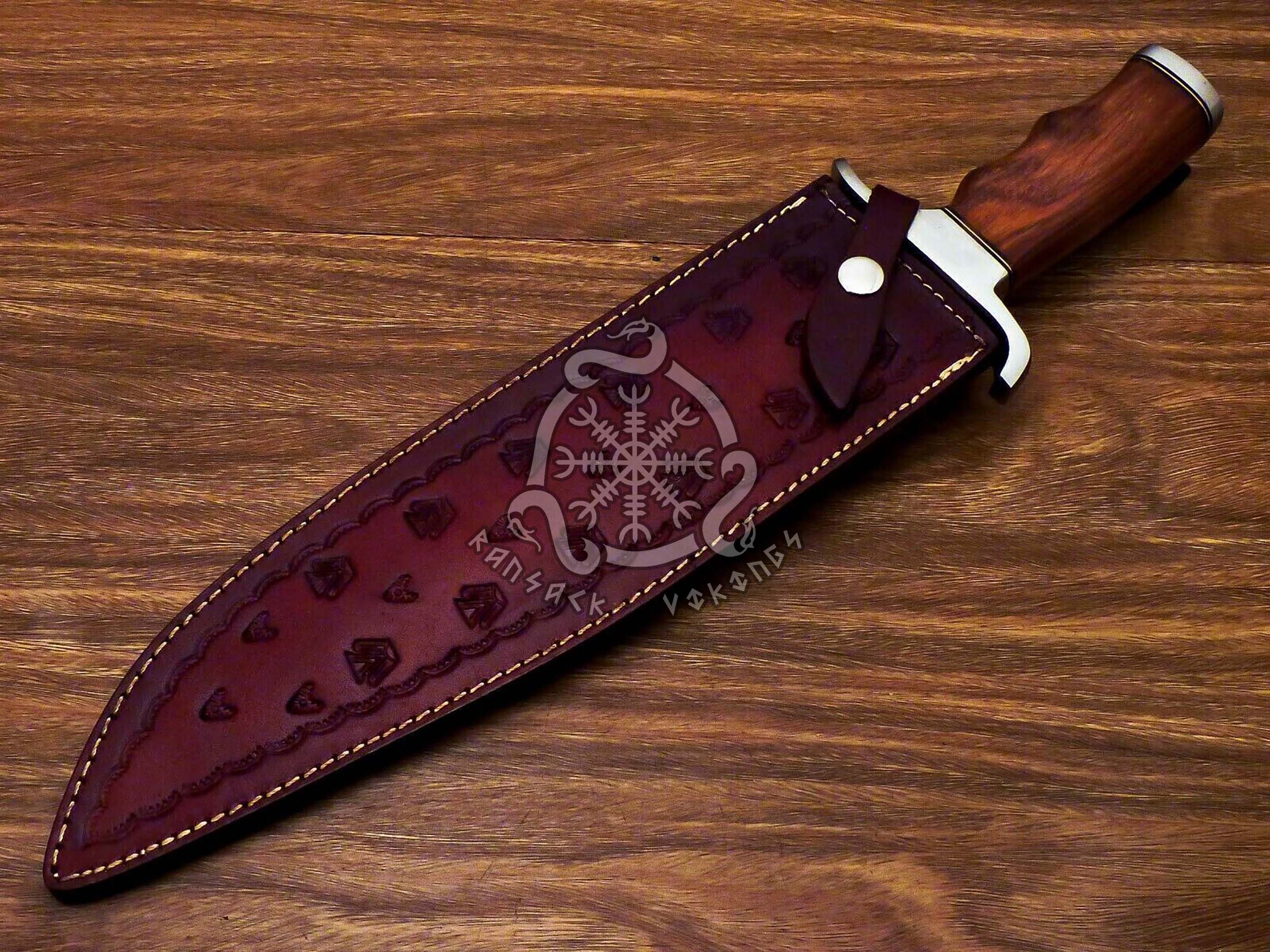 RK-567 Custom Handmade Damascus Hunting Bowie Knife Camping Knife Beautiful Wood Handle Knife Gift For Him Gift For Her USA Made