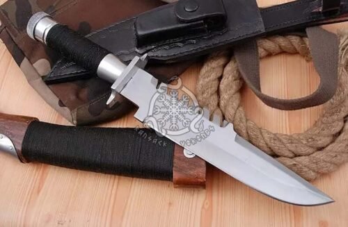 RK-585 Custom handmade D2 steel Commando knife, Camping Hiking Survival knives, | Hallow handle, Removable Back Guard With Leather Sheath Gift For Him.