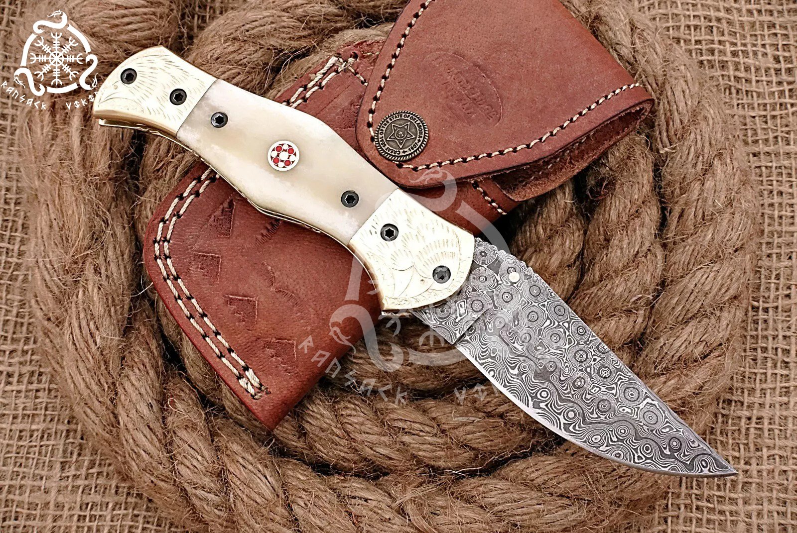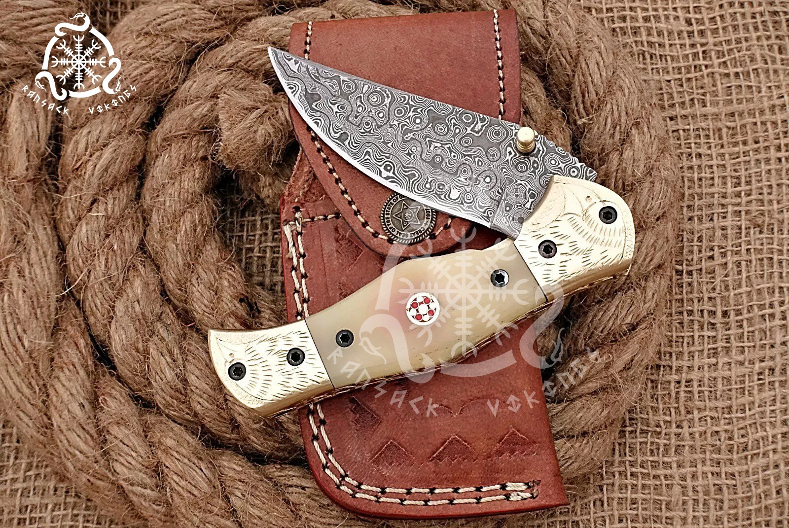 Keywords: Ransack Viking Damascus steel pocket knife, hand-forged folding knife, bone handle knife, Damascus steel blade, high-carbon steel pocket knife, engraved bolster knife, premium folding knife, custom Damascus knife, high-end pocket knife, outdoor EDC knife, hunting knife, camping knife, collectible knife, bone handle Damascus knife, survival pocket knife, engraved folding knife, traditional craftsmanship knife, rustic Damascus folding knife, unique pocket knife, everyday carry
