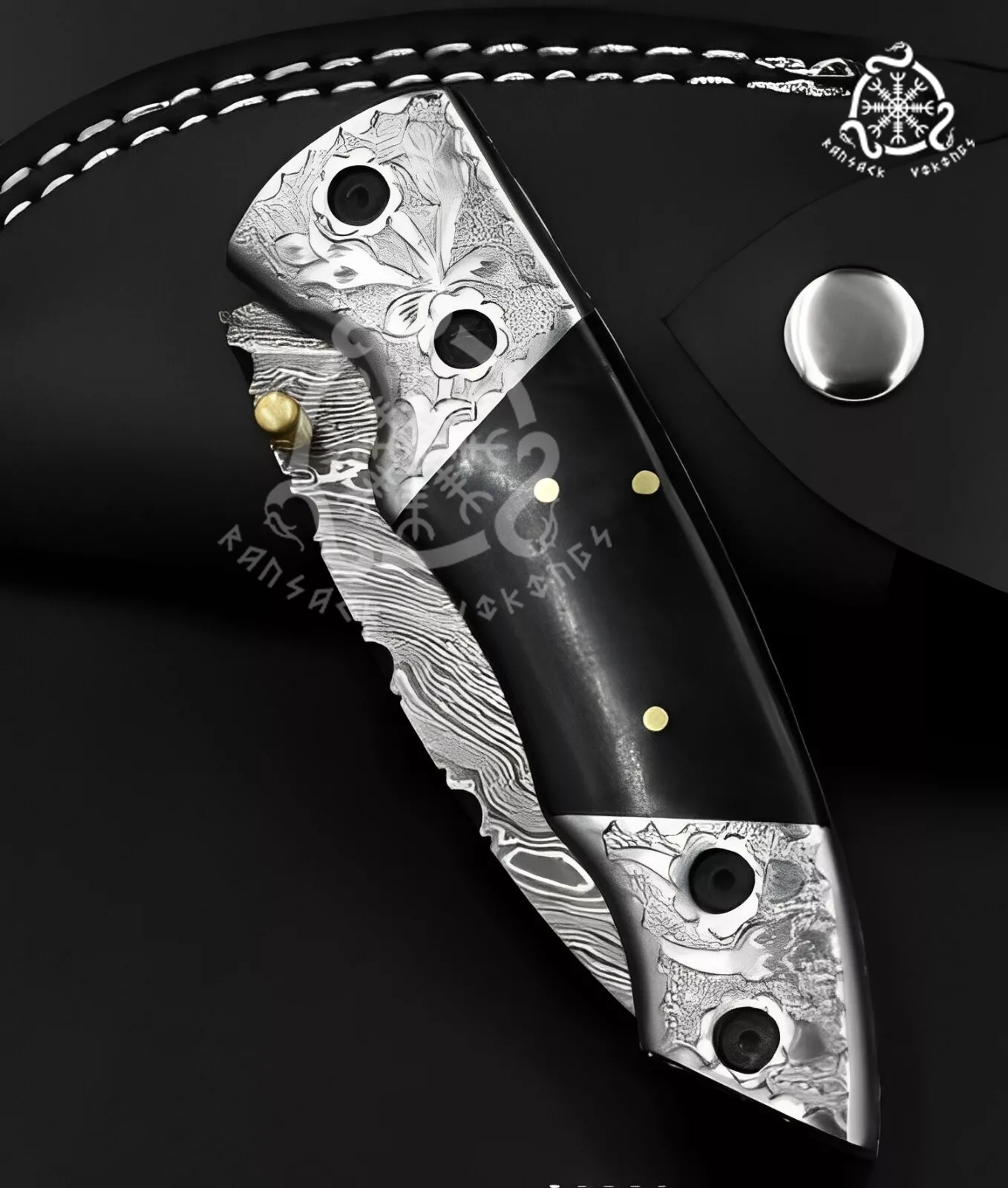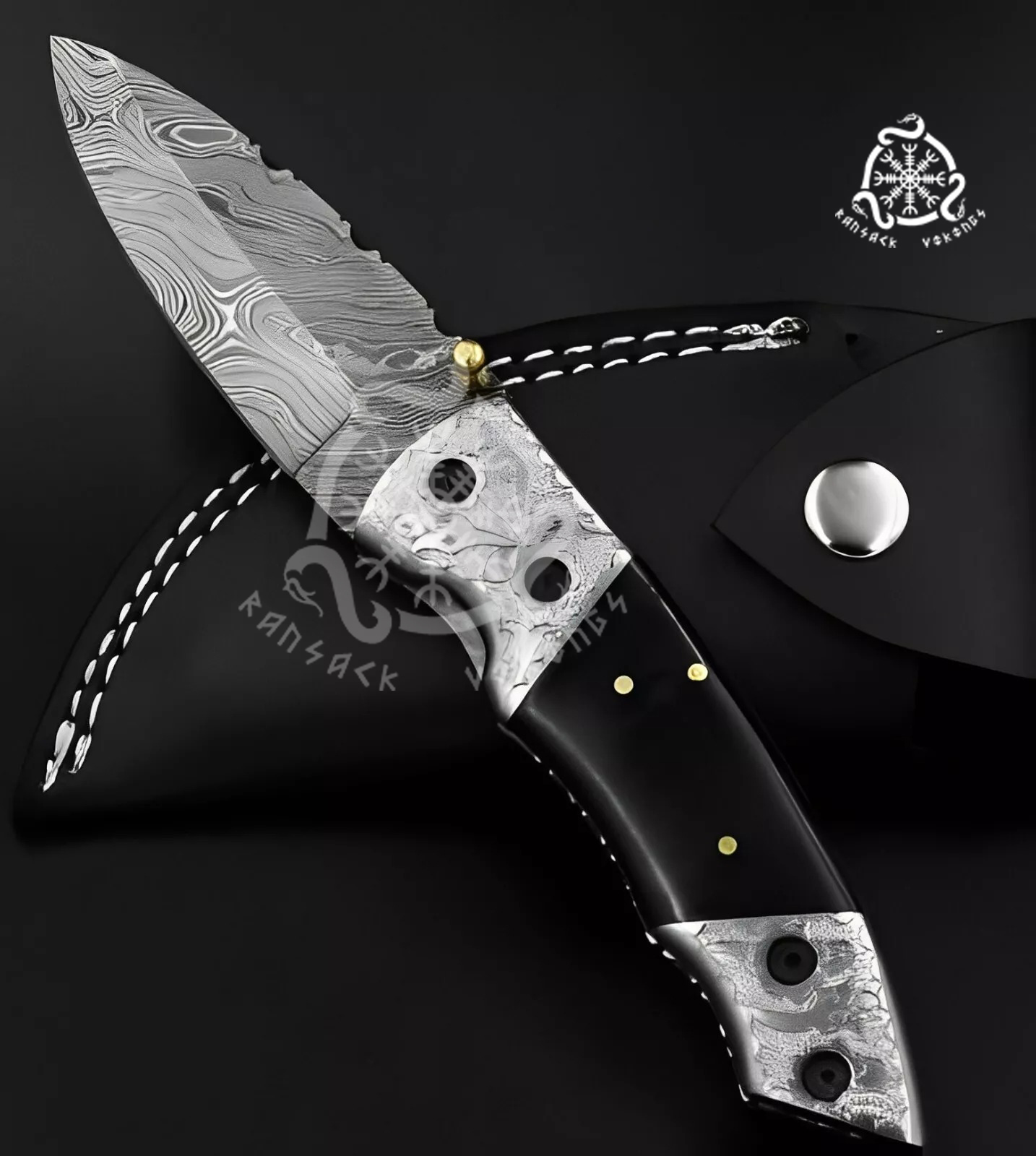 The resin handle, enhanced by an engraved brass bolster, adds a luxurious touch while providing a sturdy, comfortable grip. The engraved brass bolster not only enhances the knife’s aesthetic appeal but also reinforces its durability, making this folding knife a true work of art. This Ransack Viking pocket knife is ideal for anyone who values quality and sophistication, making it a thoughtful gift for men on any special occasion.