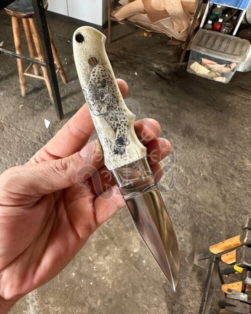 Luxury Handmade Hunting Knife Bone Eengraved Handle – Durable, Artistic & Perfect for the Wild