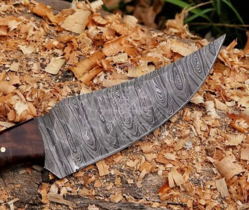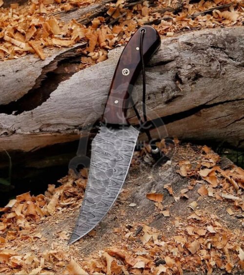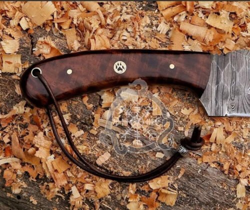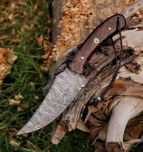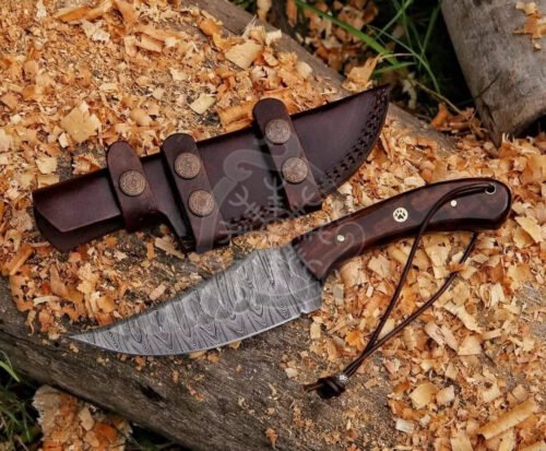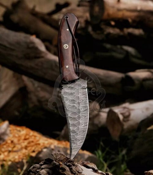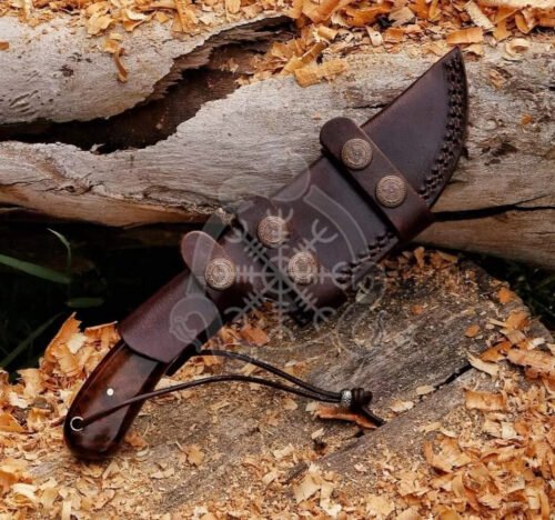 Custom Handmade 9″ Damascus Steel Hunting Skinner Knife with Premium Leather Sheath