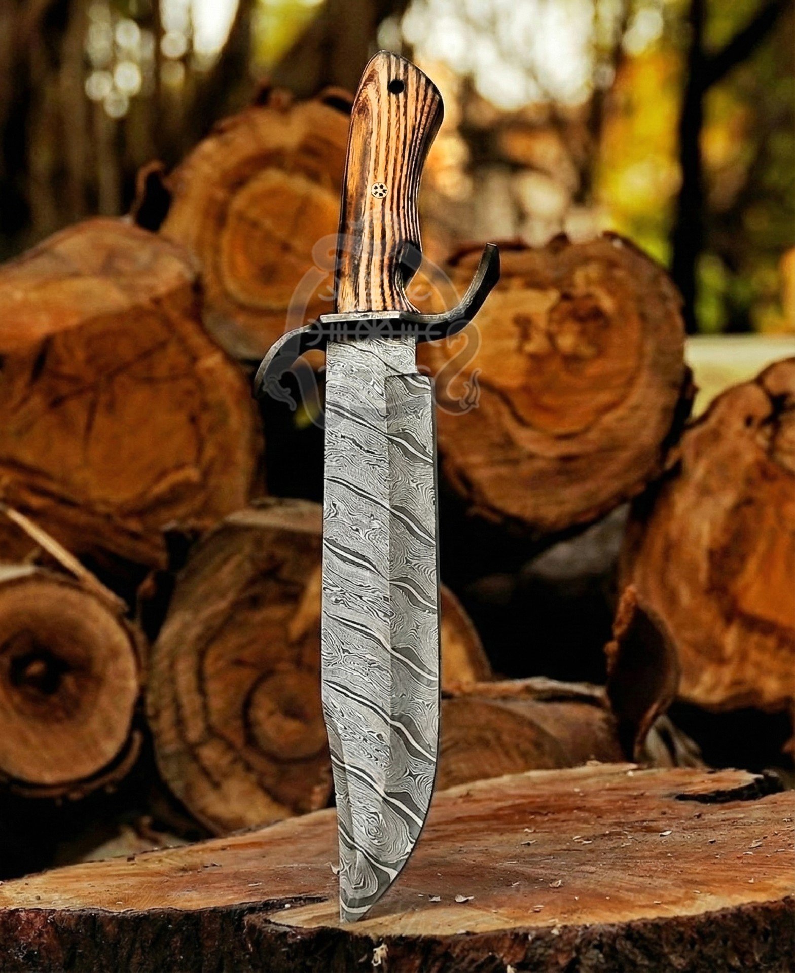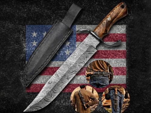 Experience unmatched craftsmanship and rugged elegance with The Expendables Handmade Bowie Knife. Expertly forged with a premium Damascus steel hilt and a razor-sharp blade, this hunting knife combines strength, precision, and timeless design. Each knife is handmade by skilled artisans, ensuring a unique pattern on every blade and hilt, making it a truly one-of-a-kind collectible for knife enthusiasts and outdoor adventurers.