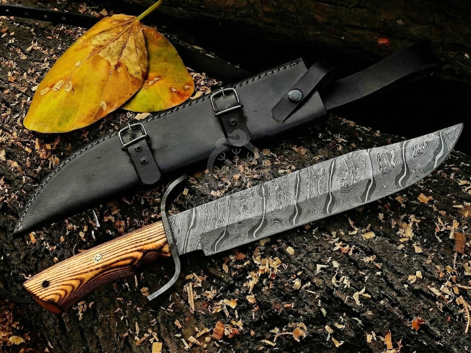The multiple-wearing leather sheath adds versatility and convenience, allowing you to carry this Bowie knife safely while complementing its premium aesthetic. Perfect for camping, hunting, survival, or as a striking display piece in your collection.