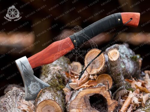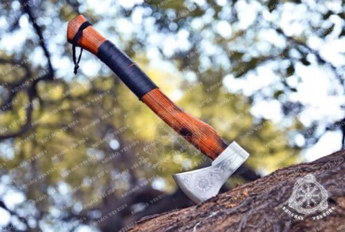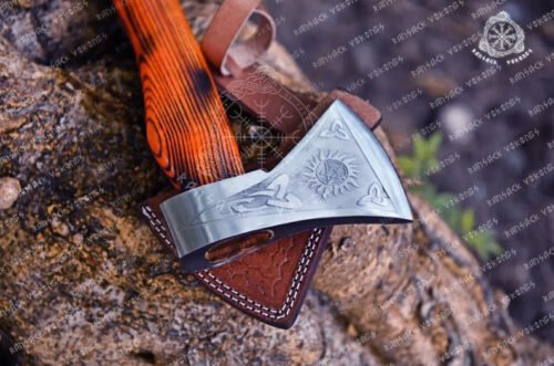 ONE Axe, Viking axe ,Hatchet, Viking Hatchet, Viking Bearded axe ,Battle axe, Birch wood, Etched Blade leather Wrap on Wood Handle For Wood Chopping
